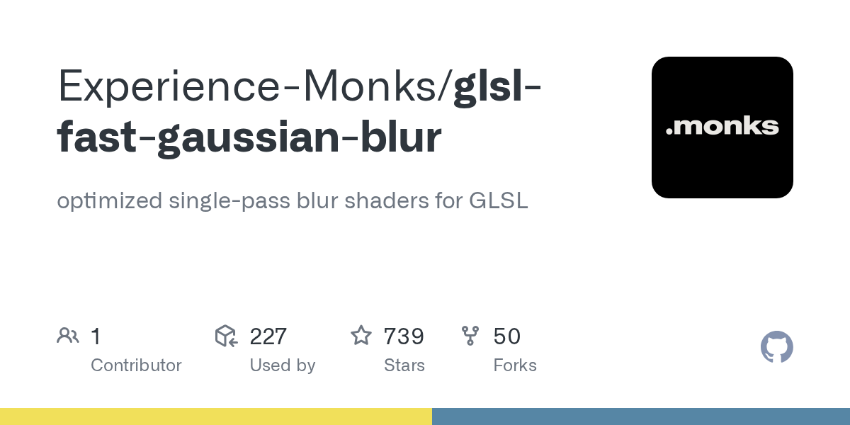 glsl-fast-gaussian-blur GitHub - Experience-Monks/glsl-fast-gaussian-blur: optimized single-pass blur shaders for GLSLoptimized single-pass blur shaders for GLSL. Contribute to Experience-Monks/glsl-fast-gaussian-blur development by creat...